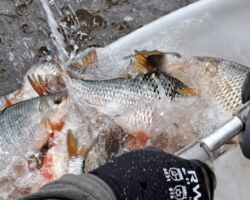 Von 7:00Uhr bis um 12:00Uhr wurden nicht nur Würmer gebadet sondern auch Fische gefangen. Bei fast allen Anglern wurde der Kescher nass.